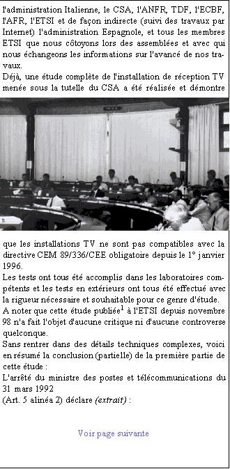 Nous voyons donc la complexité du système. Notre premier travail va donc consister à produire une norme. Ce travail là, complexe sur le plan technique, peut prendre plusieurs années. Cela a été le cas pour la norme ETS 300 433 normalisant les postes CB fonctionnant en Modulation d'amplitude à double bande latérale (AM) et à bande latérale unique porteuse supprimée (BLU). Bien sur cette norme n'est pas parfaite et ne nous satisfait pas. Elle a au moins le mérite de positionner l'AM et la BLU au statut Européen et surtout de nous servir de base pour les discussions techniques. Prétendre qu'elle ne sert à rien est aller à contre courant d'un travail méthodique qui prends certes du temps, mais qui bâti des bases solides pour l'avenir de la CB en